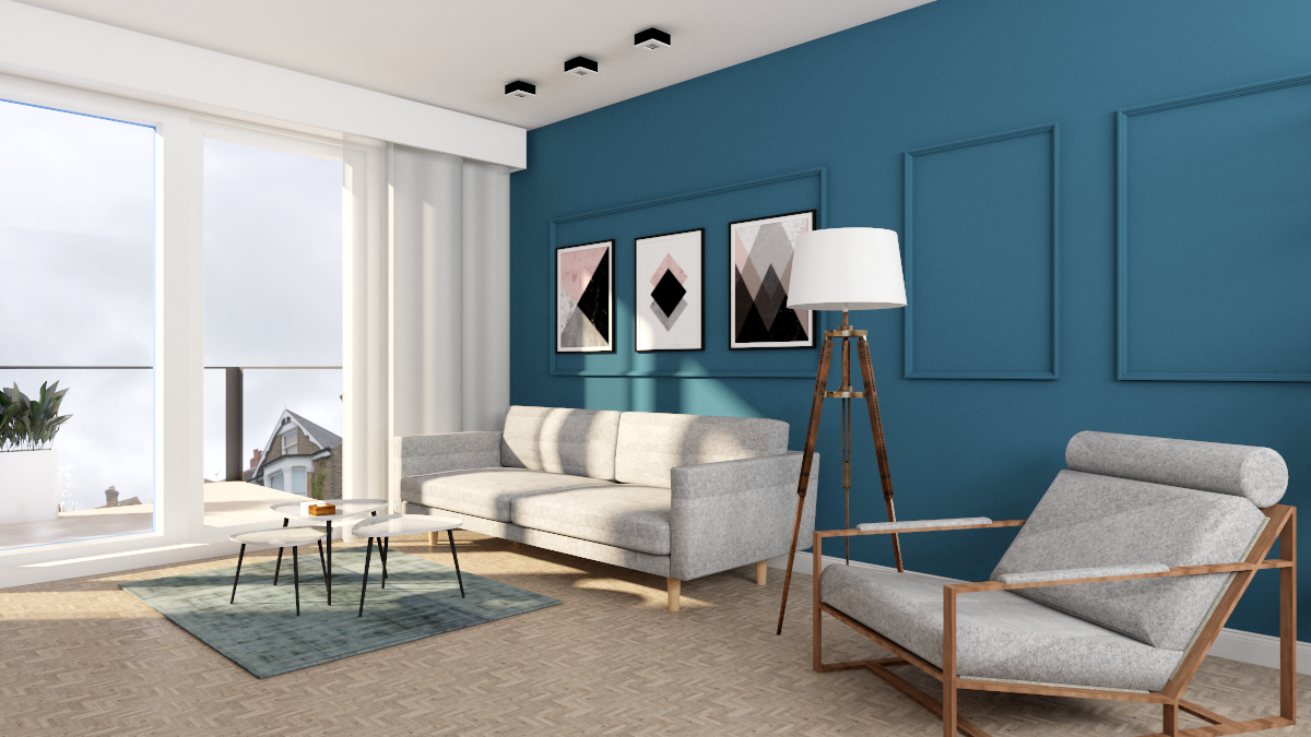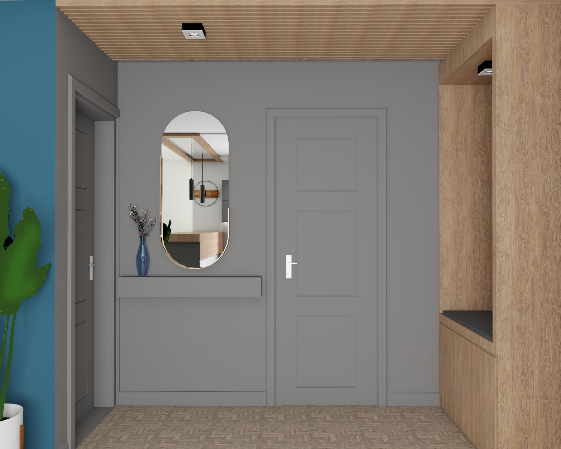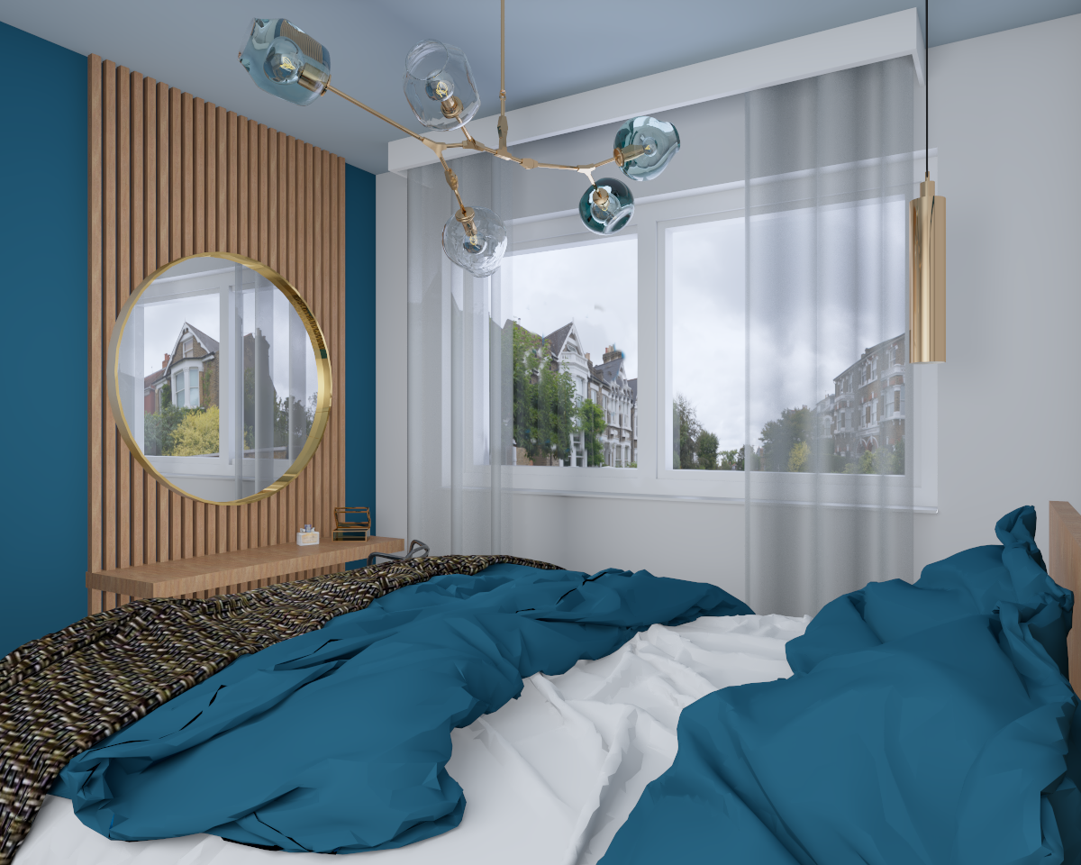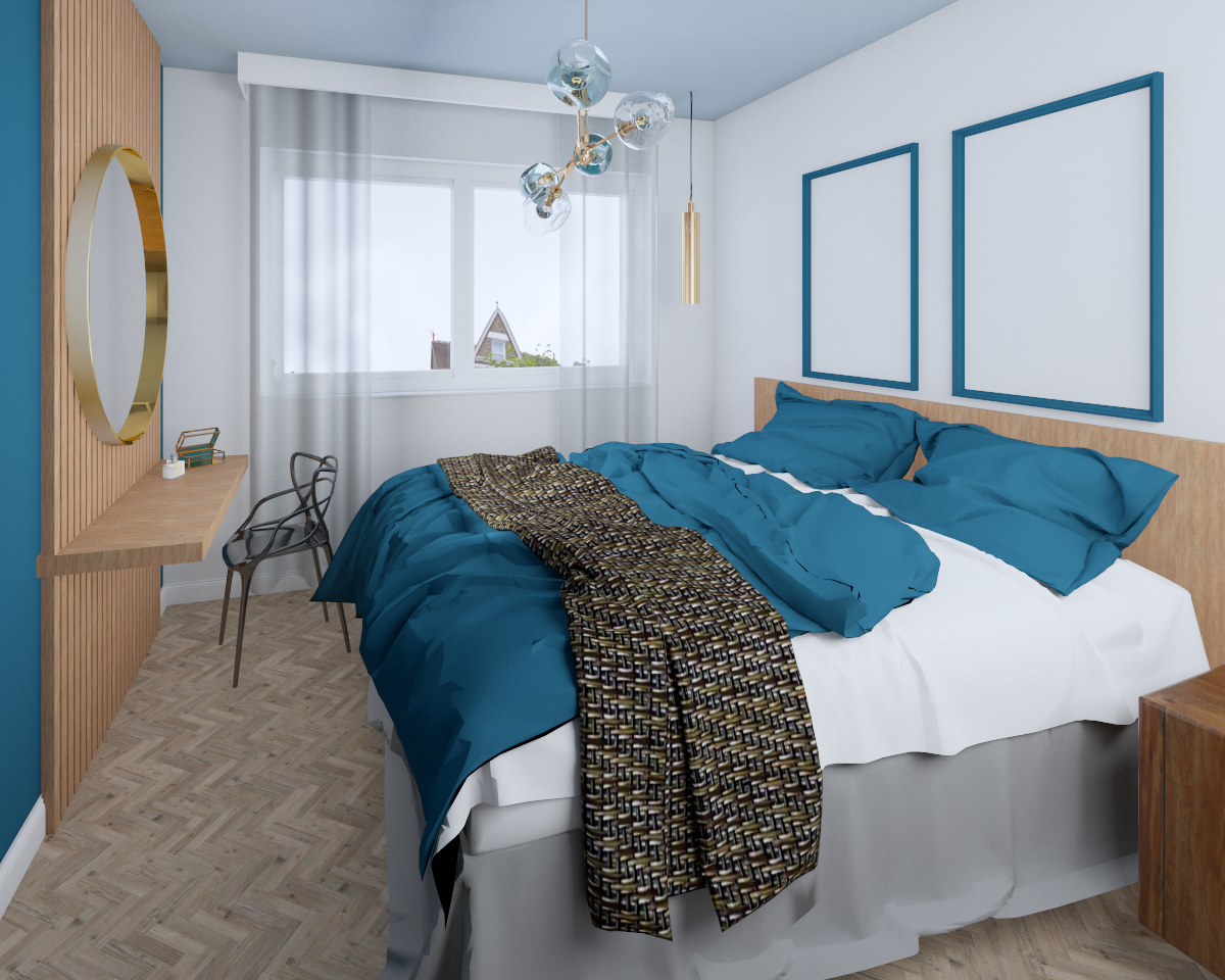 Mieszkanie inwestycyjne zaprojektowane z myślą, by każdy czuł się w nim dobrze. Ciepłe kolory drewna w każdym pomieszczeniu i lamele za stołem w jadalni sprawiły, że mieszkanie stało się przytulne. Mocne turkusowe akcenty, którymi została wykończona ściana w salonie oraz łazience, nadają wnętrzu charakteru. Elegancji w salonie dodaje sztukateria w kolorze ściany.