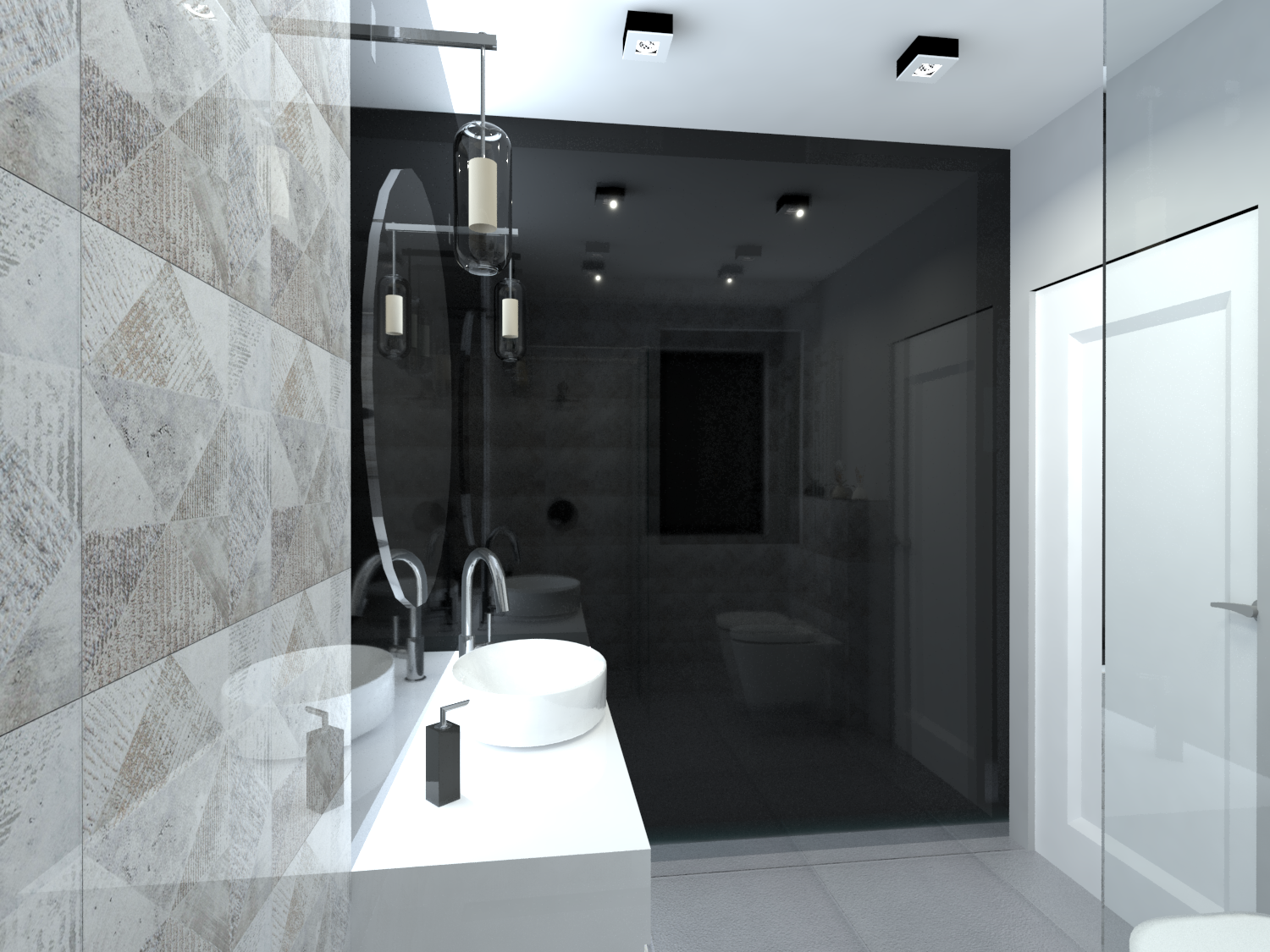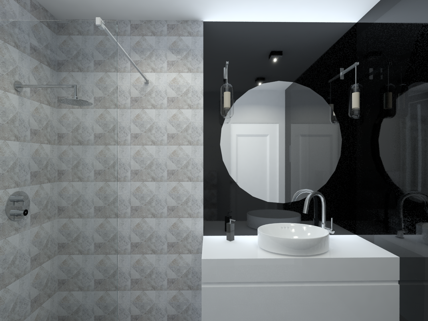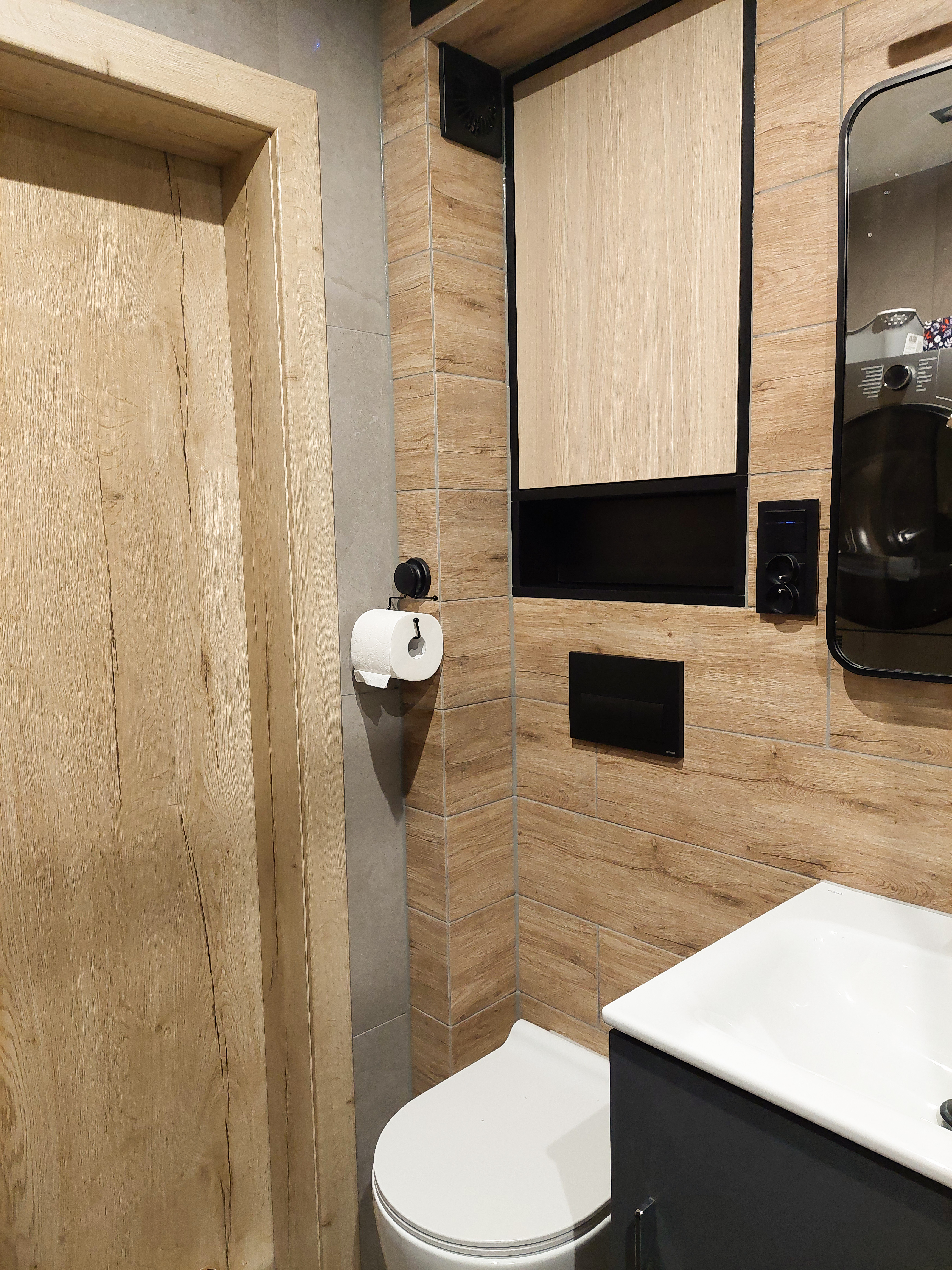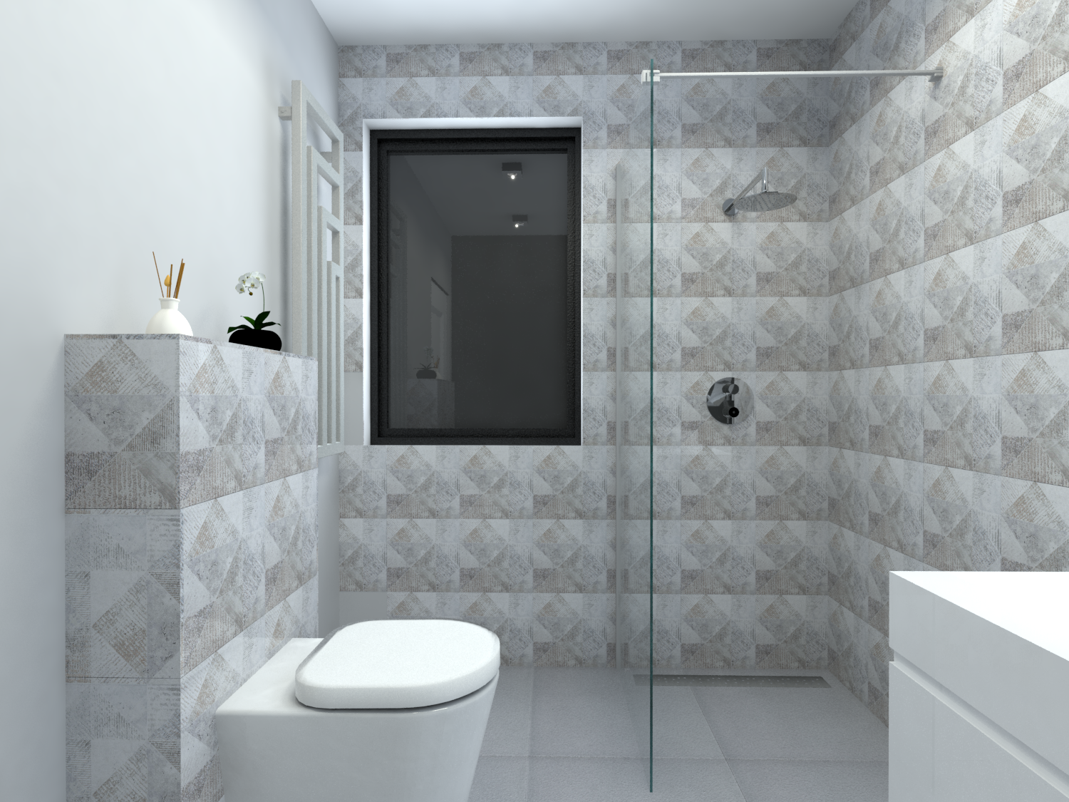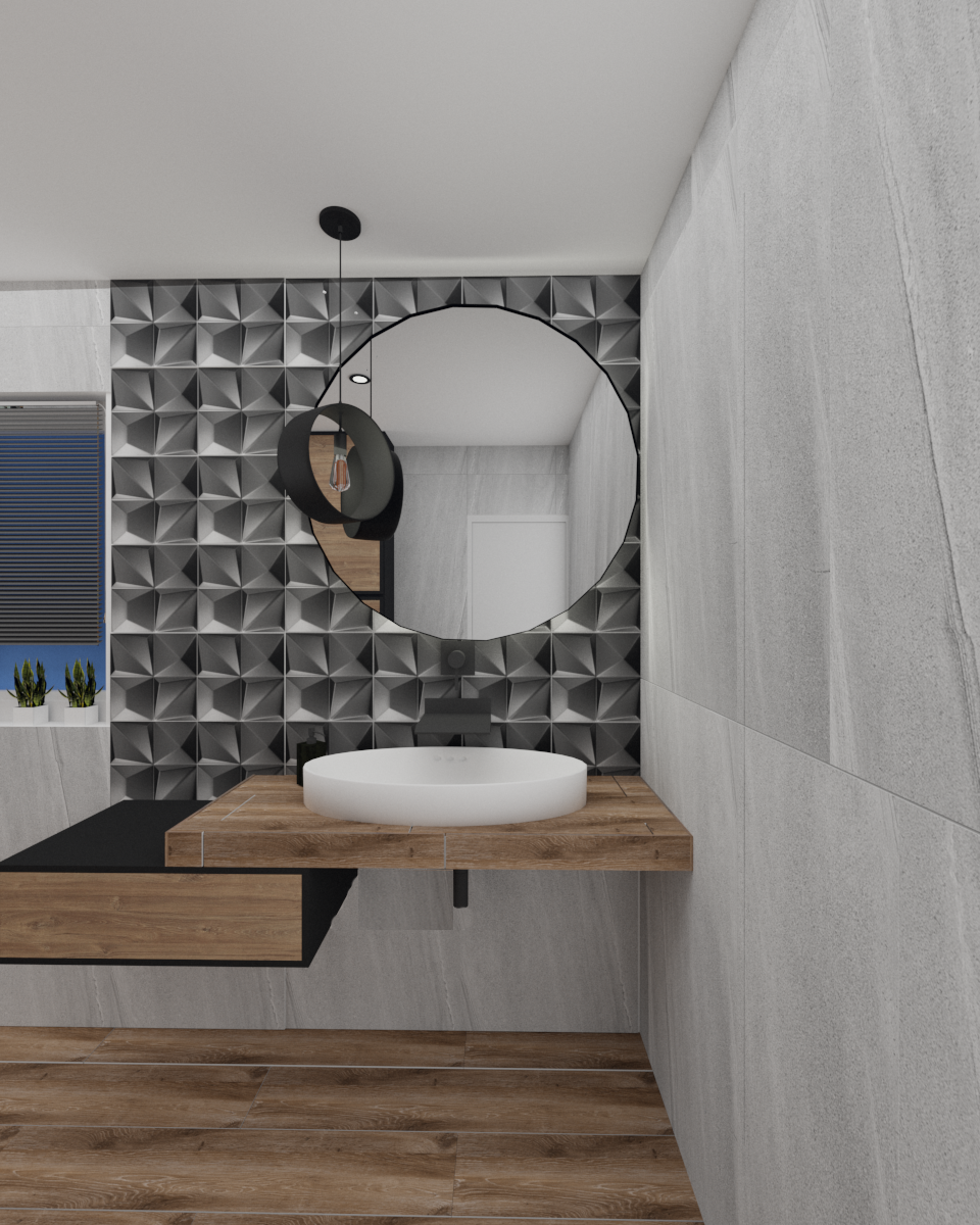 Łazienka z marmurowymi płytkami w bloku