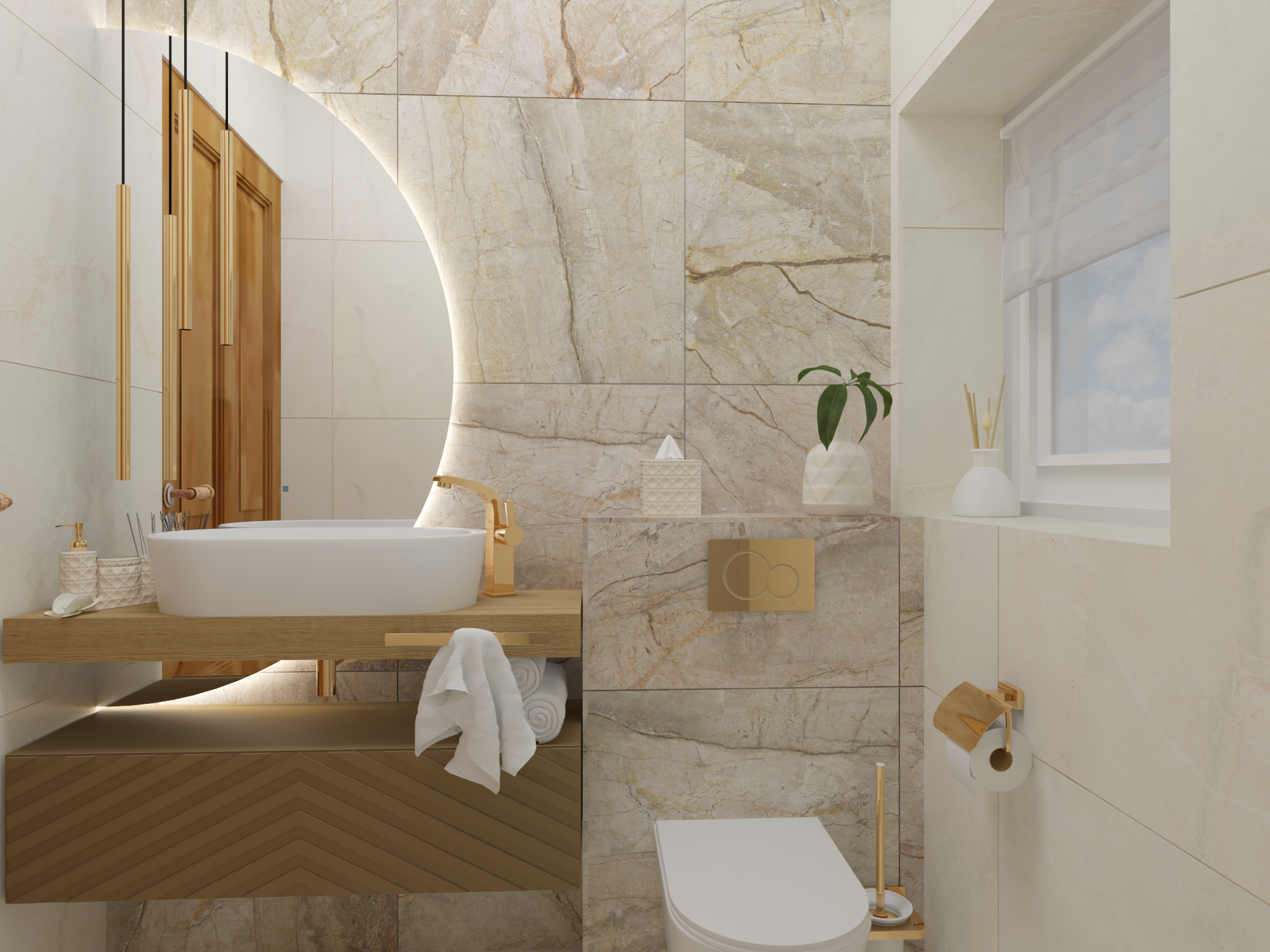 Łazienka złoto i marmur