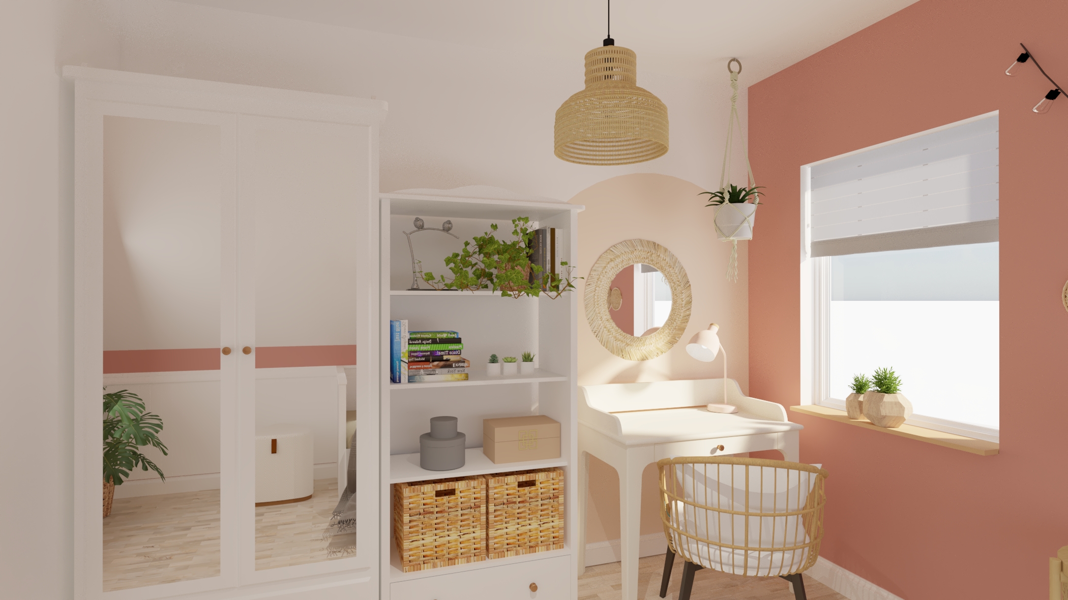 Pokój nastolatki z zabudowanym biurkiem